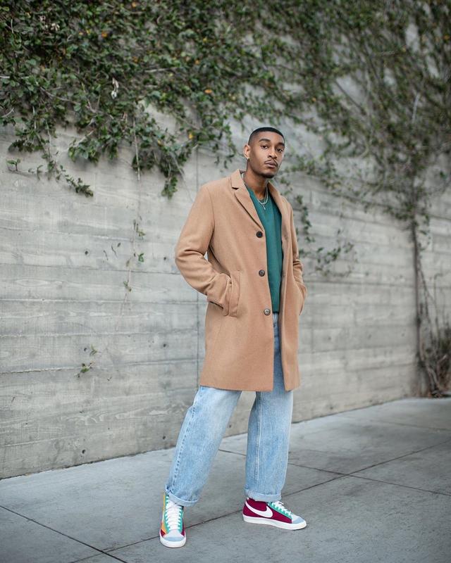 阔腿裤与大衣的搭配可以说是非常的适合,两者都是偏宽松的版型样式,组合搭配起来上下更显对称不突兀,加上大衣的大气属性,上身搭配更显得风度翩翩,与随性不羁的阔腿裤搭配起来更能给人以无拘束感。如这身选择一件简约的大衣来搭配,阔腿裤同样是简约的牛仔裤单品,搭配起来给人简约舒适感,再选择一双时髦的板鞋搭配整体更显活力不单调。