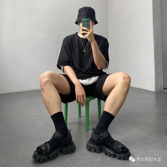 纯色黑t作为基础款,它与纯色白t是一样的地位。