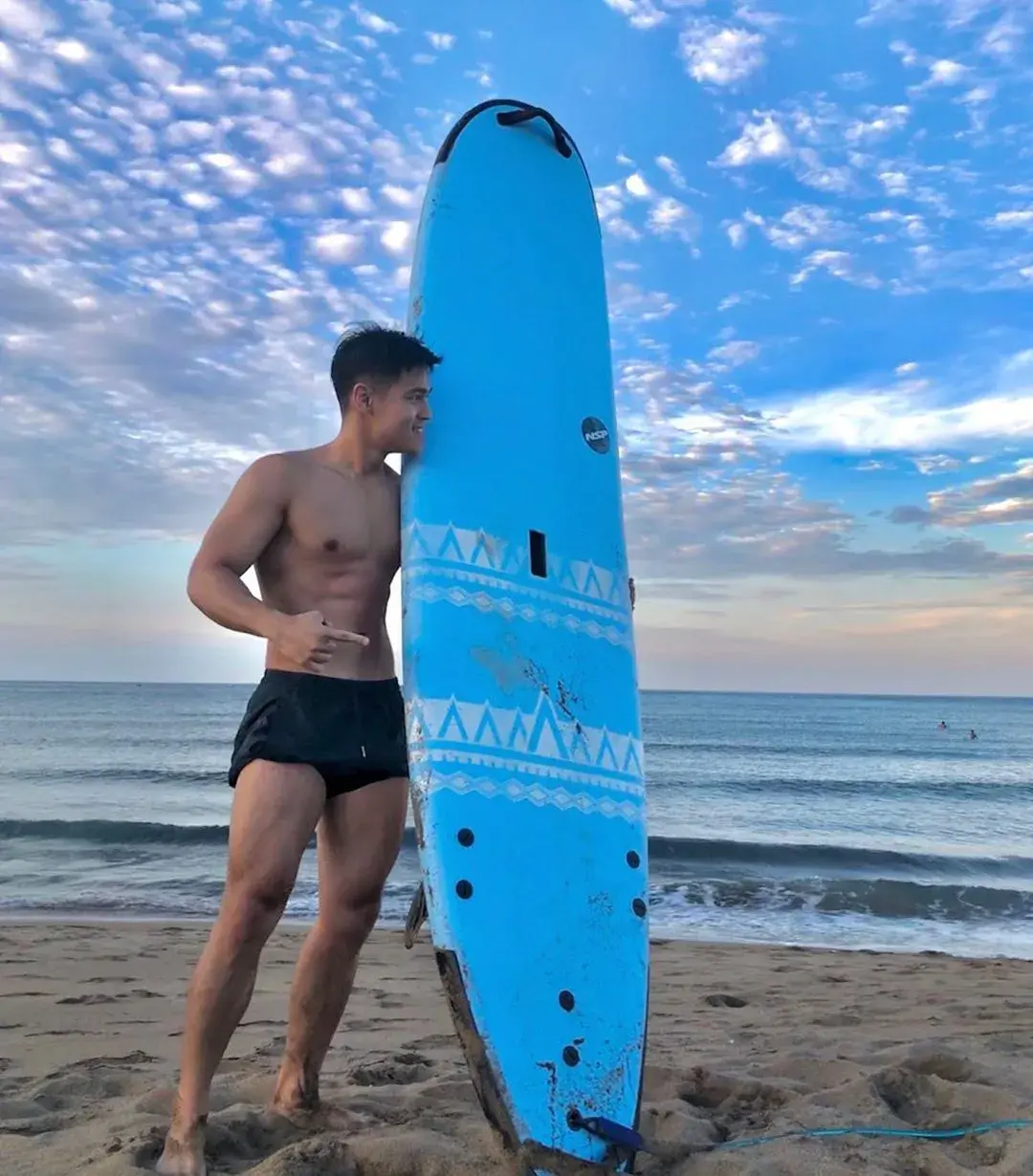 除了日常去健身房,PETER还喜欢游泳和冲浪。喜欢阳光沙滩和海水的小哥哥是不是很招人爱呢?