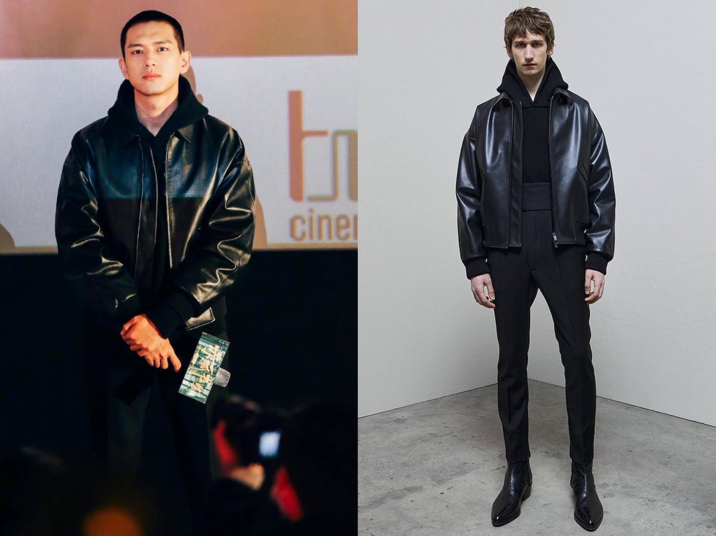 电影《赤狐书生》武汉路演,黑色皮衣来自Ermenegildo Zegna x Fear of God联名系列,这造型让人看起来有点狠呀,适合出演那种冷面杀手之类的。